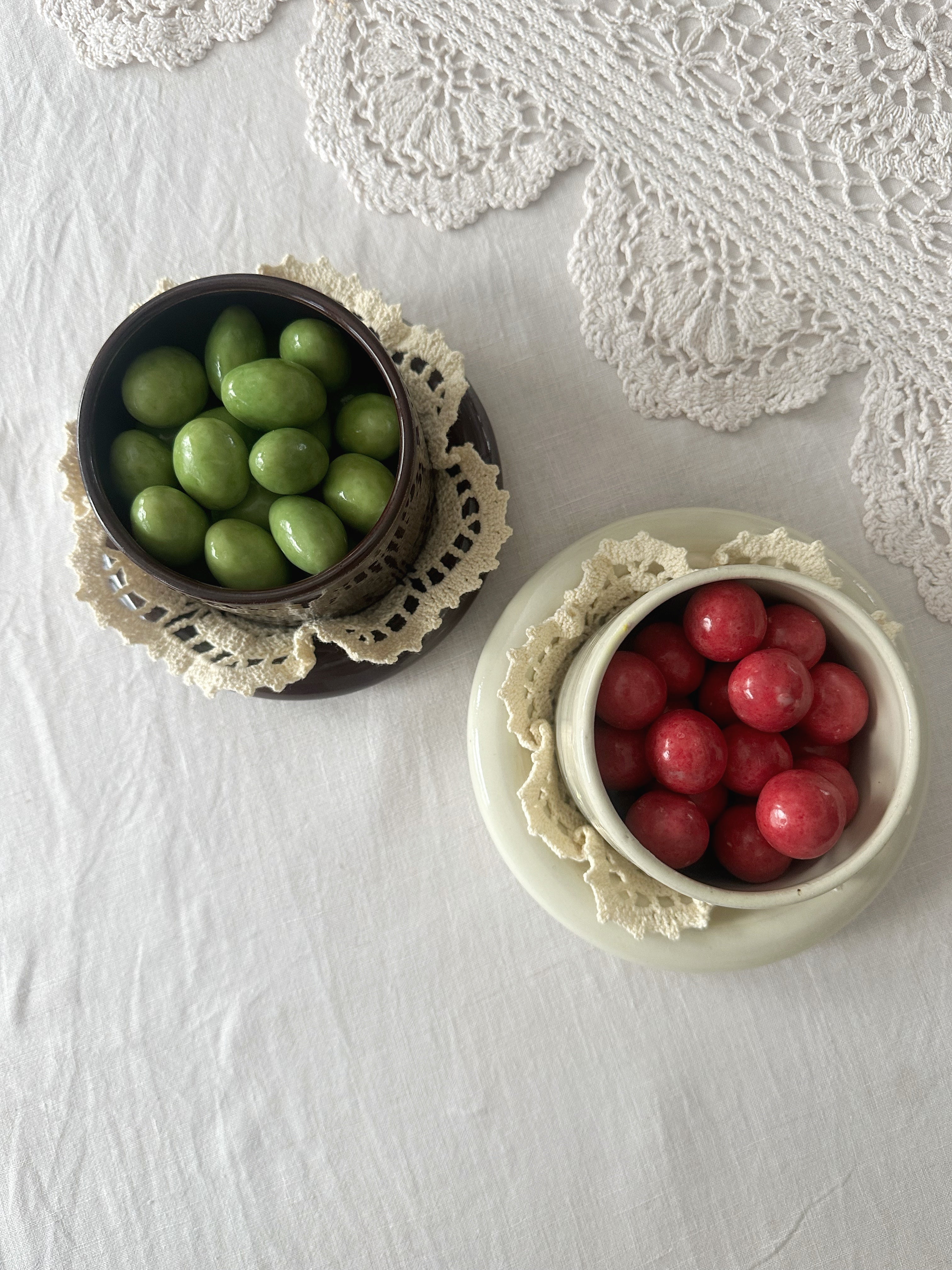 Grönt te, päronmandlar och päronkaramellerGREEN BLISS